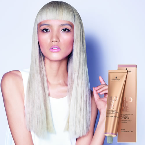 Schwarzkopf BLONDME Bond Enforcing Lifting creams give up to 5 levels of lift on natural bases 6 and lighter with up to 30% white hair.